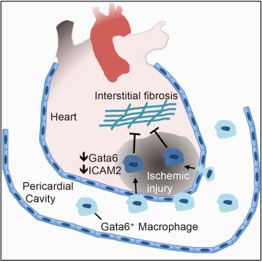 Macrophages play an important role in structural cardiac remodeling and the transition to heart failure following myocardial infarction (MI). This study examined the contribution of resident cavity macrophages located in the pericardial space adjacent to the site of injury. They found that disruption of the pericardial cavity accelerated maladaptive post-MI cardiac remodeling. Gata6 + macrophages in mouse pericardial fluid contributed to the reparative immune response.
